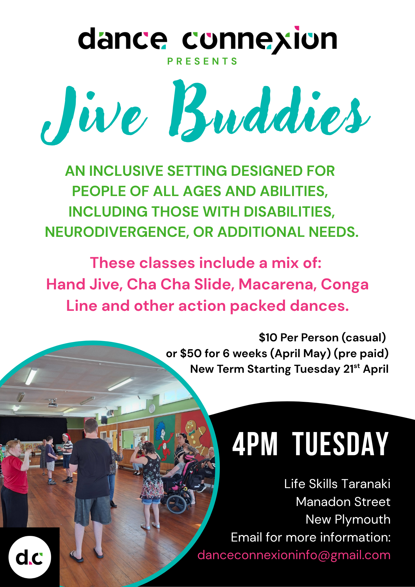 50-MIN CLASSES WITH THE BEST MUSIC. Jive buddies is a dance group for people of all ages and of all physical and intellectual abilities. jive buddies has been described as a weekly dance party, an opportunity to connect with friends and a place to enjoy music and movement at your own pace.